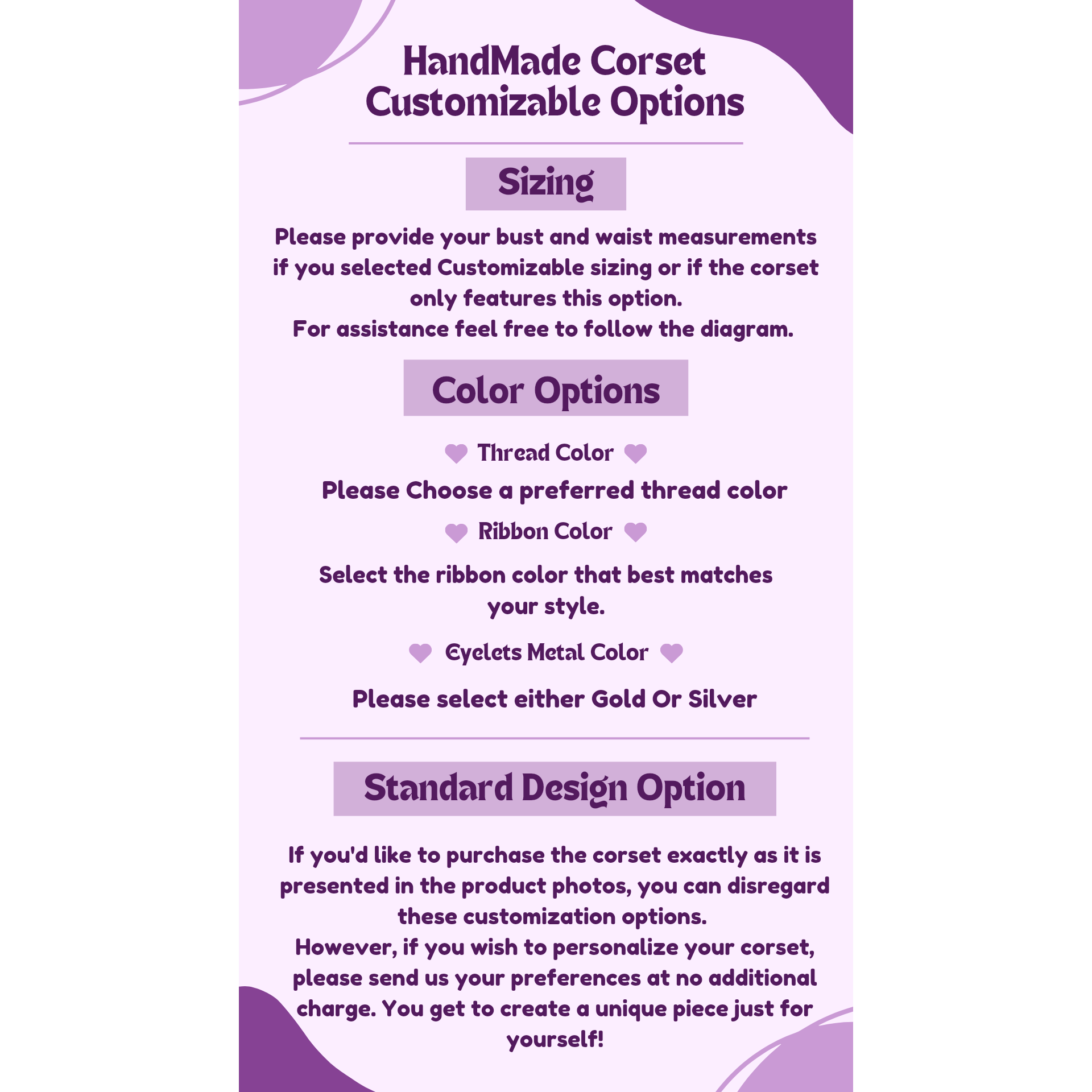 This Corset Can Be Customizable In Sizing using your Bust and Waist Measurements.